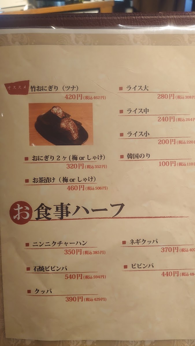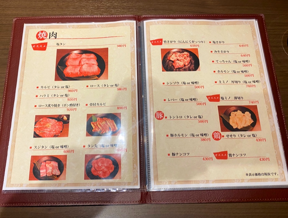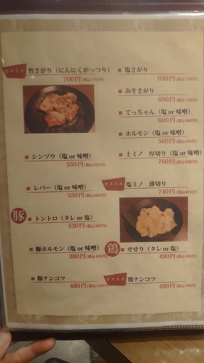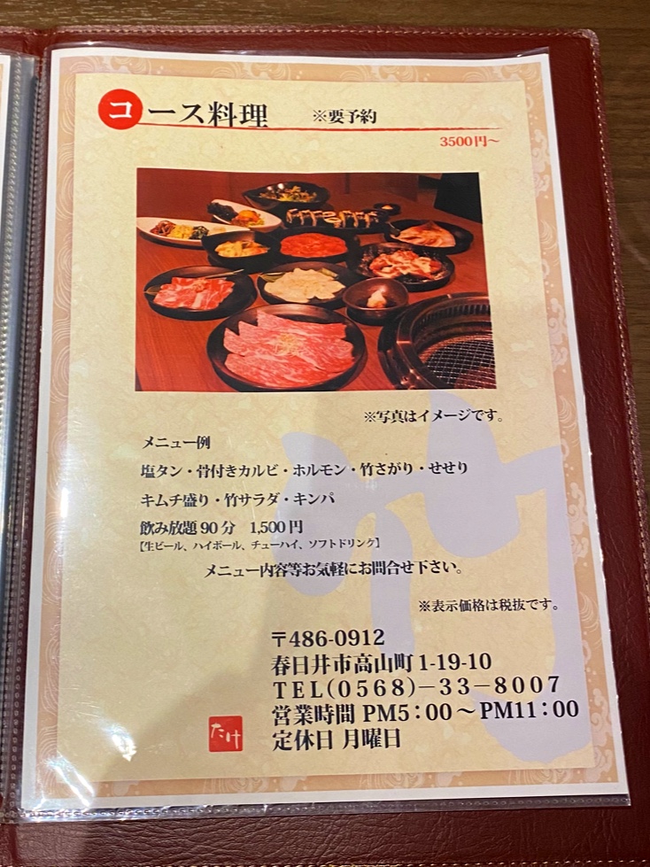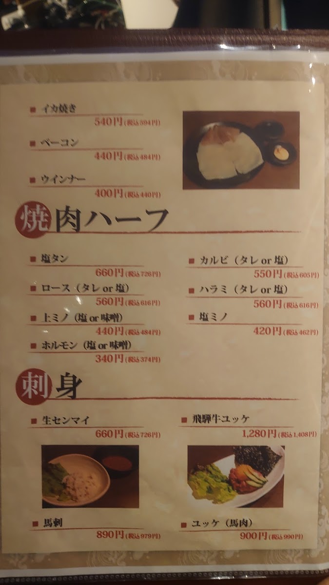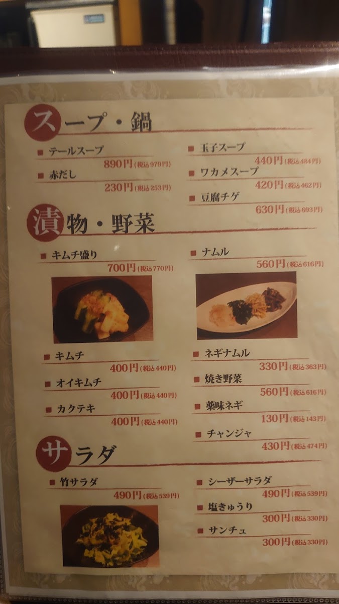 The menu at Yakiniku Take offers a well-rounded and satisfying selection that highlights both classic yakiniku staples and flavorful side dishes, leaving a strong impression of variety and quality. Standout grilled items like 塩サガリ and ニンニクサガリ deliver tender cuts with rich seasoning, while options such as カルビ 軟骨, ホルモン レバー 心臓, and レバー 心臓 ホルモン showcase the restaurant’s strength in offal, prepared with care to balance texture and taste. Complementing these are lighter yet equally memorable dishes like 竹サラダ, ナムル, and サンチュ, which add freshness and contrast to the heavier grilled meats. The inclusion of Korean-inspired items such as キンパ and キムチの盛り合わせ further enriches the menu, offering depth and diversity. Meanwhile, センマイ刺し stands out for those seeking something more adventurous, and the comforting ニンニク炒飯 rounds off the meal perfectly. Beverage options like 生ビール and ハイボール&レモンサワー pair seamlessly with the bold flavors throughout. Altogether, the menu reflects a thoughtful balance of traditional yakiniku offerings and complementary dishes, making it both approachable and deeply satisfying for a wide range of diners.